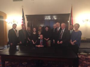 Our group was prepared to meet with Governor Kasich, and we were escorted into the ceremonial office. The Governor engaged us in conversation and asked why this bill was important to us. While the bill was important to us all, it was most important to Mr. Walker and Ms. Birkholz. Governor Kasich asked them to share their stories. As the stories were shared, tears flowed. The embrace of Governor Kasich and young Ms. Birkholz warmed every heart in the room. The Governor asked what else we needed to do, and ACC members provided a number of ideas. Governor Kasich proceeded to sign HB 247 into law as Mr. Reid Birkholz finalized it by applying the period after the initial R, John R. Kasich.