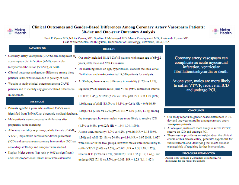 Clinical Outcomes and Gender-Based Differences Among Coronary Artery Vasospasm Patients: 30-day and One-year Outcomes Analysis